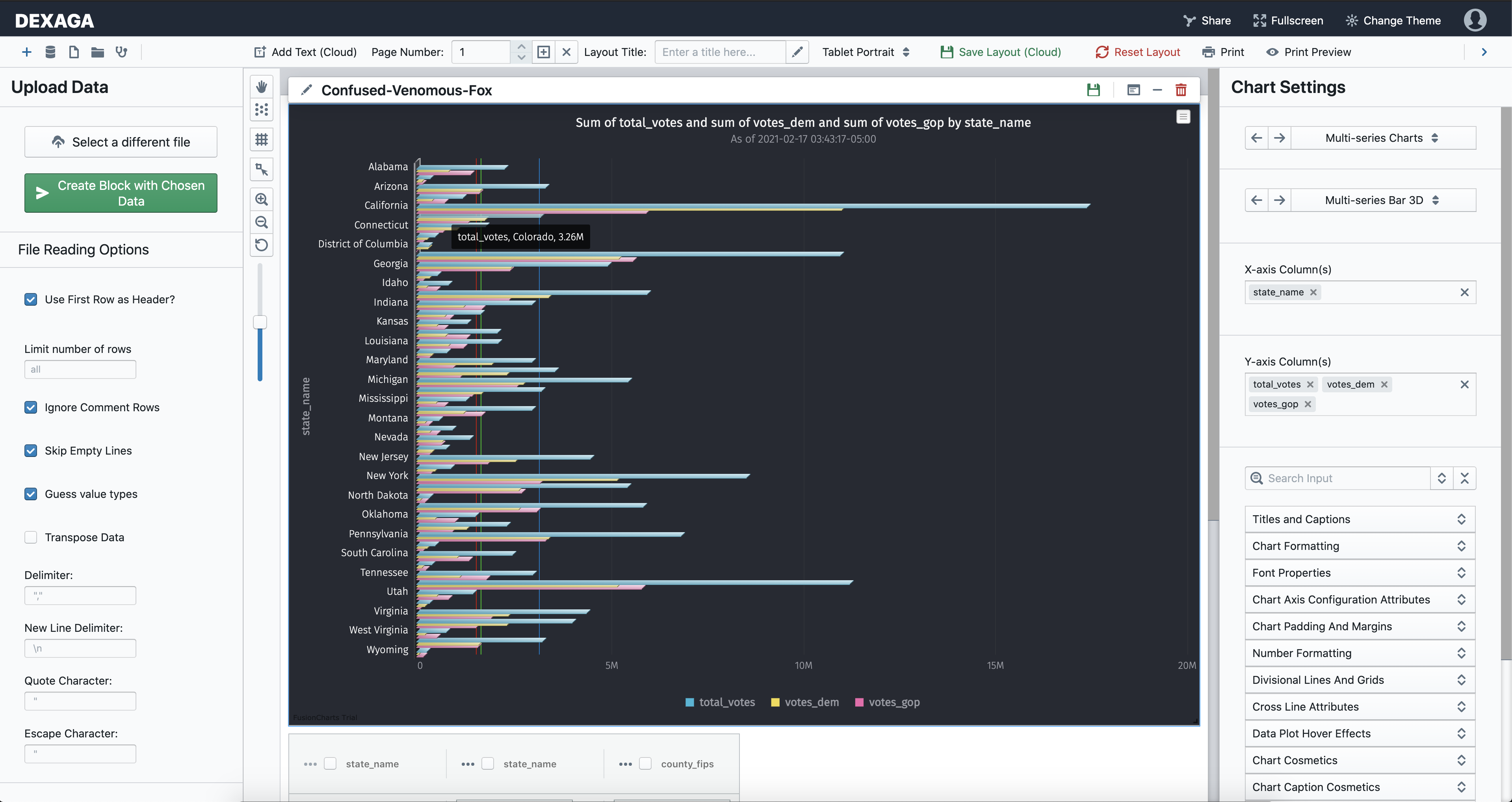Dexaga is a data exploration tool designed to help users find and make sense of their data. Users can easily browse, query, and aggregate information. Dexaga also includes the ability to cross reference that data with location information to infer and display where a particular object is as well as what is related to that object. Our users particularly like that this is all possible without the need to know a querying language like SQL.